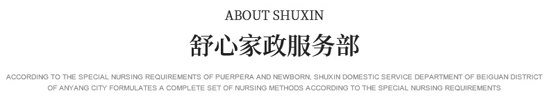 關(guān)于我們 產(chǎn)婦服務(wù) 新生兒護理 育嬰服務(wù) 月嫂培訓 催乳師培訓 舒心家政 月子餐 資質(zhì)榮譽 服務(wù)案例