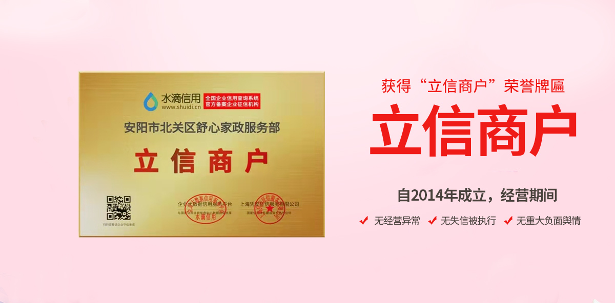 安陽市北關(guān)區(qū)舒心家政服務(wù)部立于2014年 是經(jīng)工商管理部門注冊,具有母嬰護理服務(wù)機構(gòu) 所有上崗人員均通過崗位技能培訓嚴格考核,持有身份證 健康證 母嬰護理師證并且在公安部門備案方可上崗。安陽市北關(guān)區(qū)舒心家政服務(wù)部針對產(chǎn)婦和新生兒的特殊護理要求制訂一整套的護理方法 在現(xiàn)代科學理念的指導下通過對產(chǎn)婦的飲<了解更多>